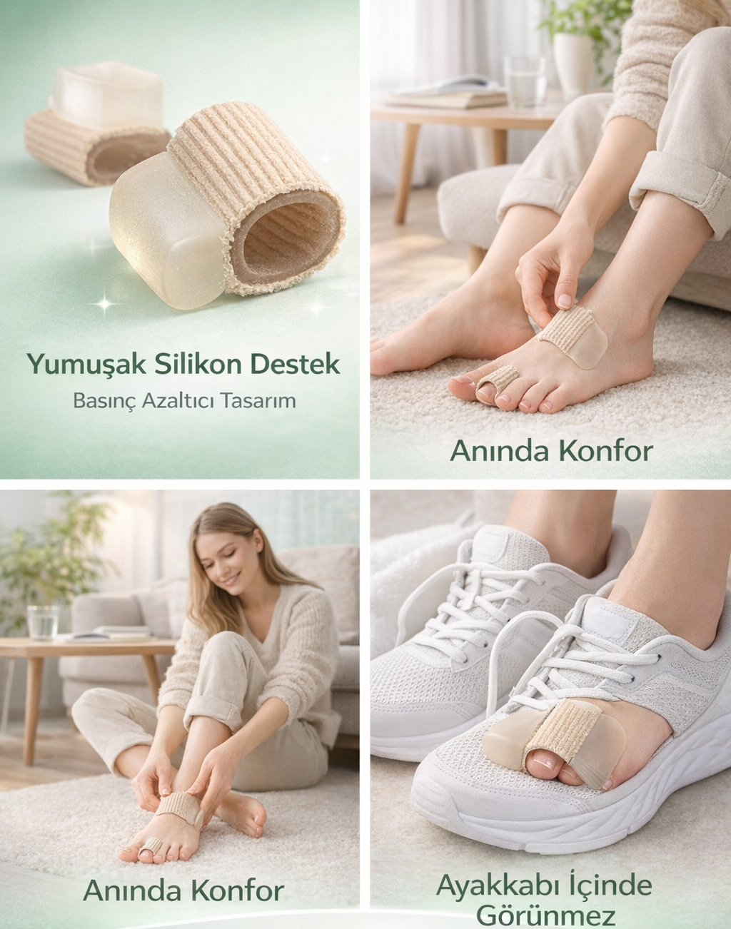 Ayakkabı içinde stabil destek sağlar, tahrişi önlemeye yardımcı olur ve günlük hareketlerde ekstra koruma sunar.